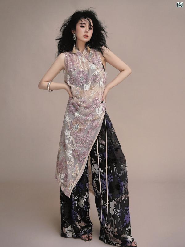 レディース ファッション オシャレ かわいい 綺麗 大人ファッション Y2K 個性的 海外風 つれた 刺繍 オートクチュール フル ビーズ ヘビー チャイナ ドレス レディース