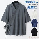 【送料無料】甚平 メンズ 夏 トップス 羽織り カーディガン 2WAY 綿麻 リネン 七分丈袖 お祭り 花火大会 Vネック 無地 紐付き 通気性 涼しい 柔らかい 薄い 大きいサイズ ゆ