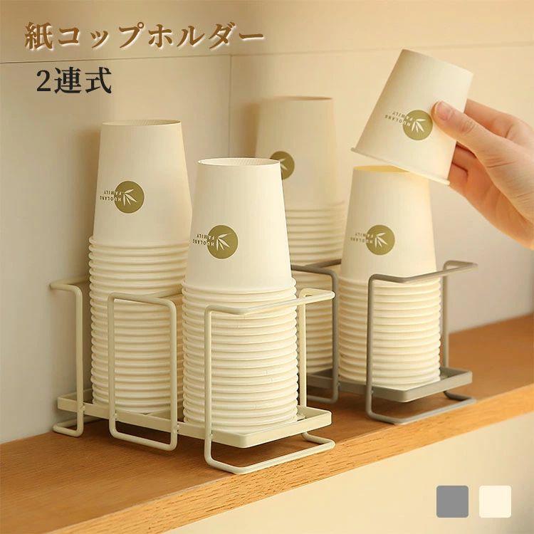 紙コップホルダー 卓上 紙コップ収納 単列 2連式 カップディスペンサー 置き型 鉄製 補充簡単 2連式 仕切り 通気 衛生 ペーパーカップスタンド カフェ ホーム 業務用 紙コップスタンド 紙コップディスペンサー グレー ベージュ