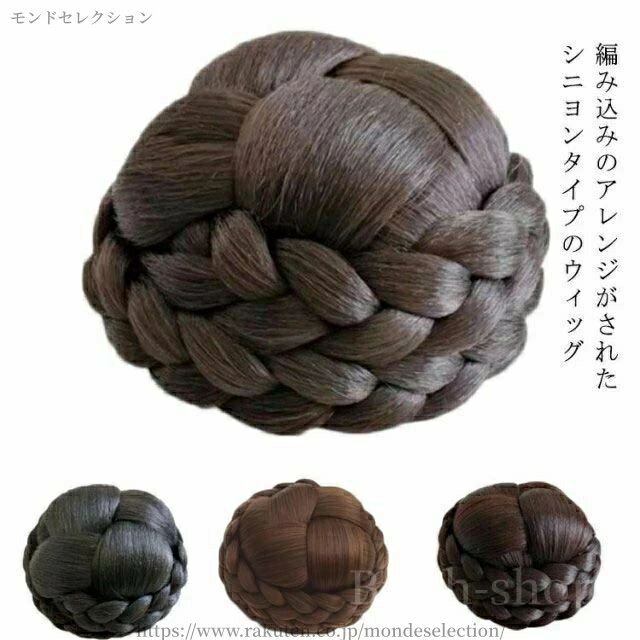 編み込みのアレンジがされたシニヨンタイプのウィッグ地毛を一つに束ねて、かぽっとキャップの中へ入れ込むだけ!キャップの内側に付属しているのコームや、足りない部分はお持ちのピンなどを使い固定 サイズM Lサイズについての説明M 直径10cm 高6cm L 直径12cm 高7cm素材耐熱ファイバー色ブラック ブラウンブラック ライトブラウン ダークブラウン備考 ●サイズ詳細等の測り方はスタッフ間で統一、徹底はしておりますが、実寸は商品によって若干の誤差(1cm〜3cm )がある場合がございますので、予めご了承ください。●製造ロットにより、細部形状の違いや、同色でも色味に多少の誤差が生じます。●パッケージは改良のため予告なく仕様を変更する場合があります。▼商品の色は、撮影時の光や、お客様のモニターの色具合などにより、実際の商品と異なる場合がございます。あらかじめ、ご了承ください。▼生地の特性上、やや匂いが強く感じられるものもございます。数日のご使用や陰干しなどで気になる匂いはほとんど感じられなくなります。▼同じ商品でも生産時期により形やサイズ、カラーに多少の誤差が生じる場合もございます。▼他店舗でも在庫を共有して販売をしている為、受注後欠品となる場合もございます。予め、ご了承お願い申し上げます。▼出荷前に全て検品を行っておりますが、万が一商品に不具合があった場合は、お問い合わせフォームまたはメールよりご連絡頂けます様お願い申し上げます。速やかに対応致しますのでご安心ください。