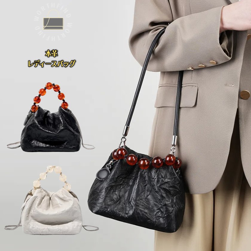 レディース ショルダーバッグ ハンドバッグ パール クロスボディ 大容量 バッグ かわいい プリーツ クラウド 女性用牛革財布 ビーズハンドル トートショルダーバッグ ゆったりしたヴィンテージ ホーボー財布 サッチェル クロスボディバッグ 女性用レディースバッグ