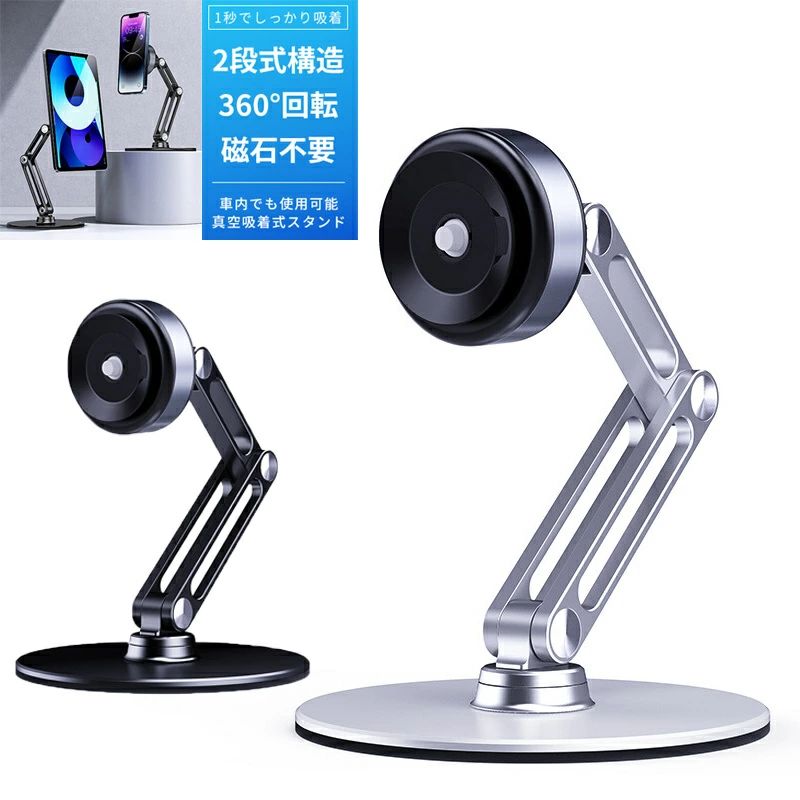 スマホスタンド スマホホルダー 車載 車用 吸盤式 車載ホルダー カー用品 伸縮アーム 回転可能 スマホアクセサリー 回転 縦向き 横向き ダッシュボード ブラック 黒