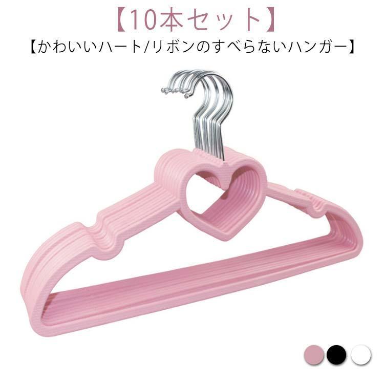 10本セット ハート ハンガー すべらない すべらないハンガー リボン オシャレ スカート ズボン 収納 ステンレス ラック コンパクト かわいいハー