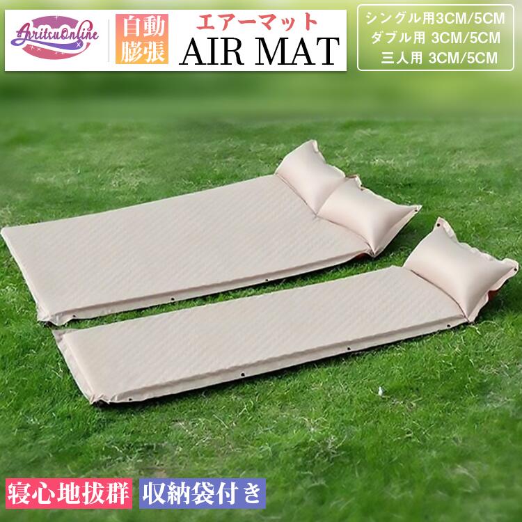 アウトドア マット 寝袋マット 車中泊 ビーチ 家庭用 防水 収納袋付き 防潮 お花見 連結可能 登山 1人用 エアーマット 5cm 防災グッズ 軽量 撥水 ツーリング レジャー 枕付き キャンピングマット 自動膨張式 2人用 3cm コンパクト マットレス ダブル キャンプ