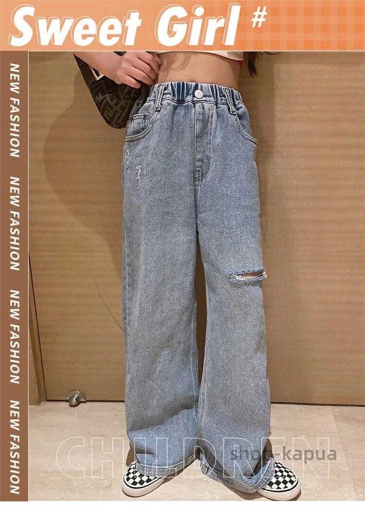 ヒップホップ 女の子 デニムダメージジーンズ ステージ B系 かっこいい k-pop ストリート キッズ 子供服 長ズボン