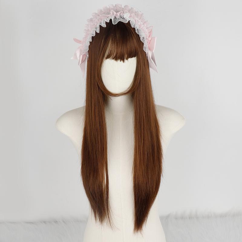 コスプレウィッグ レディース 二次元 ロリータ ぱっつん前髪 ロングストレート ウォームティーチェスナットブラウン 合成繊維 自然な かわいい イベント 仮装