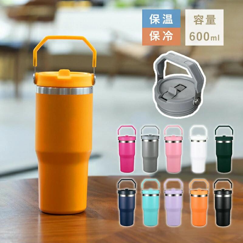 タンブラー 600ml 直飲み ストロー付き 保温 保冷 蓋付き 持ち手付き 水筒ストロー 持ち運び ストロー 直飲み ストロー付き 水筒 コーヒー 持ち手 おしゃれ 大容量 こぼれない ステンレス 食器 広口 大容量 漏れない オフィス アウトドア