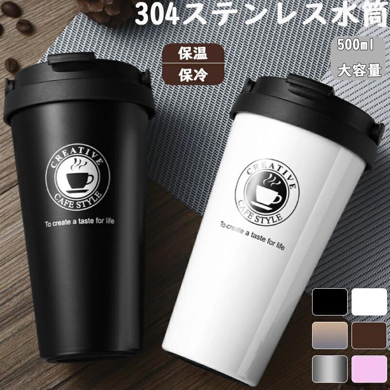 二重構造 保冷 コーヒーカップ 通学 おしゃれ プレゼント オフィス コーヒー 漏れない 500ml ストロー付き 大容量 コーヒータンブラー 蓋付き 保温 真空断熱 マグボトル 通勤 誕生日 直飲み 車載 ボトル 持ち運び ステンレス製 アイスコーヒー 水筒 マグカップ