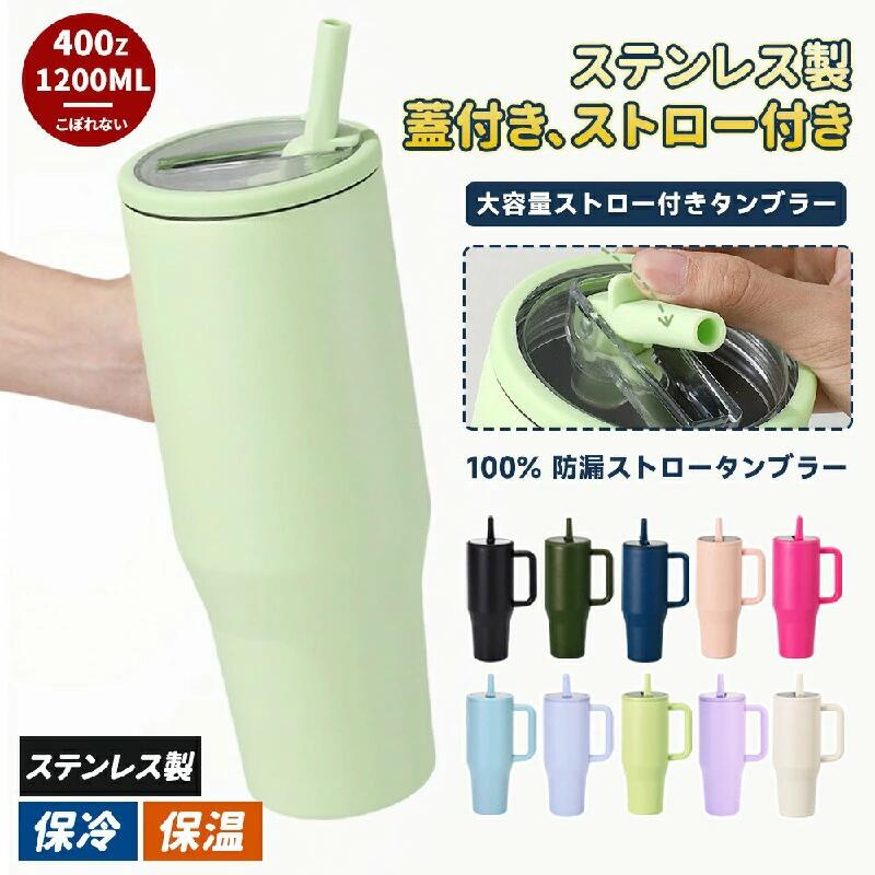 タンブラー 水筒 大容量 1200ML 保温 保冷 蓋つき ハンドル付き 持ち運び ストロー付き こぼれない 大容量 蓋付き 二重構造 真空断熱 ステンレス タンブラー 車 スポーツ アウトドア おしゃれ 可愛い 通勤 通学 オフィス 1.2L