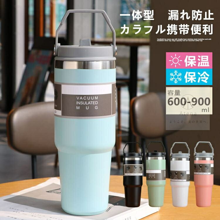 タンブラー 保温 保冷 蓋付き 600ml 900ml 1200ml 水筒ストロー 持ち運び ストロー 直飲み ストロー付き 水筒 コーヒー 持ち手 おしゃれ 大容量 こぼれない ステンレス 食器 真空断熱 広口 大容量 漏れない オフィス アウトドア 運動会 おしゃれ