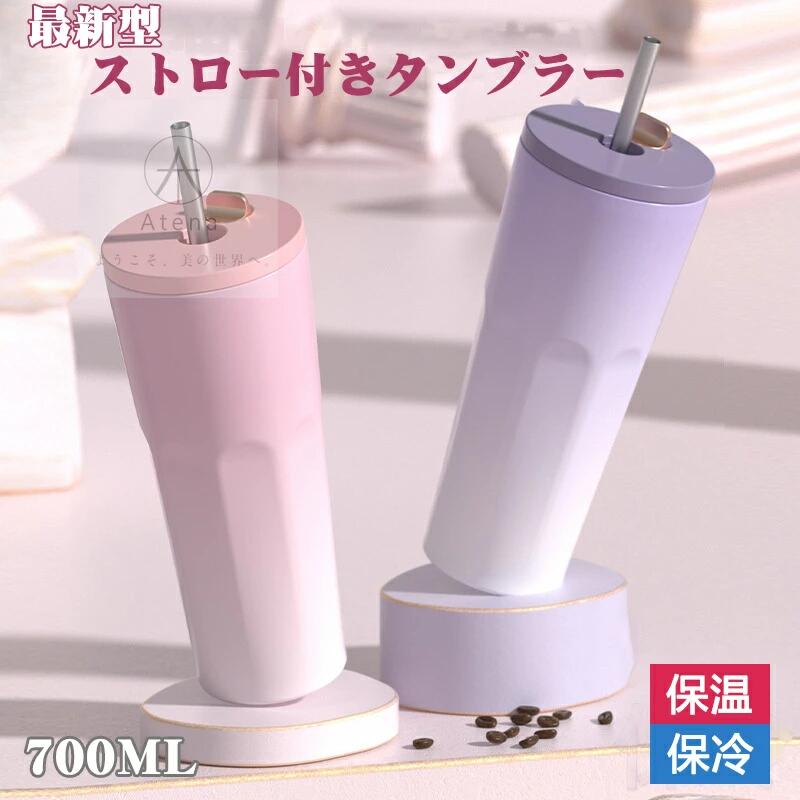 保冷 710ml大容量 ステンレス ストロー付きタンブラー 保温 水筒 セラミック 真空断熱 ストロー付きタンブラー タンブラー こぼれない 手提げス