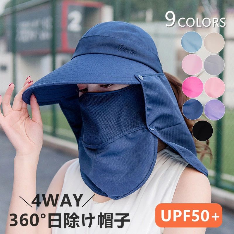 キャップ サンバイザー レディース UPF50+ UVカット 日焼け防止 紫外線対策 グッズ 春 夏 秋 日よけ 帽子 農作業 フェイスカバー 水分補給 ネックカバー 4way 折りたたみ 収納 ボタン取り外し 顎紐 つば広 無地 スポーツ