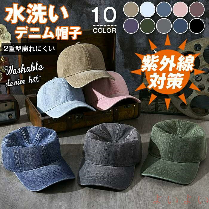 【送料無料】キャップ メンズ レディース 無地 デニム帽子 水洗いデニム 野球帽 カジュアル オシャレ ゴルフ 旅行 UVカット 調節可能 男女兼用 スポーツ ランニング ゴルフ帽