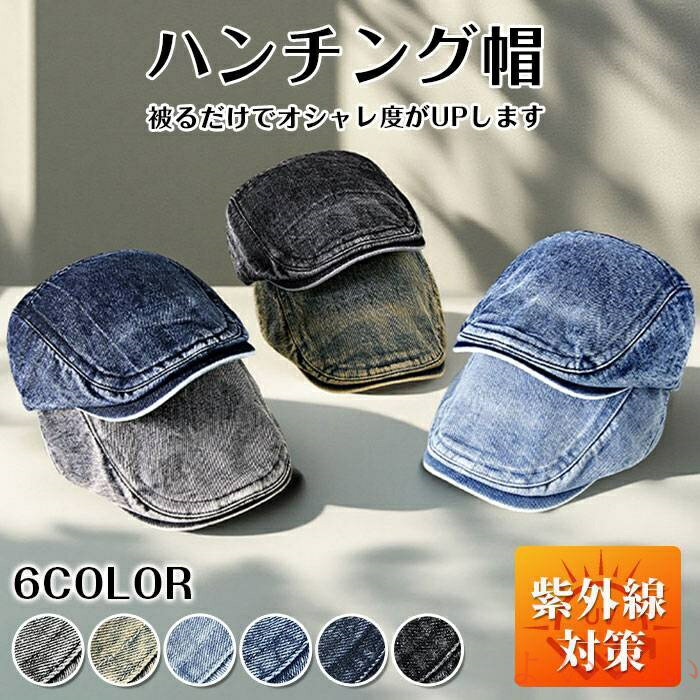 【送料無料】ハンチング帽 メンズ レディース デニム 帽子 無地 キャップ ぼうしサイズ調整 スポーツ UVカット 紫外線対策 全6色 デニムキャップ ベレー帽子 おしゃれ かっこ