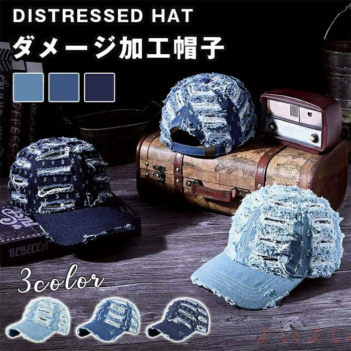 【送料無料】キャップ デニム ダメージ 無地 帽子 メンズ レディース 水洗いデニム コットン100% 野球帽 おしゃれ スポーツ カジュアル 調節可能 ベースボールキャップ 男