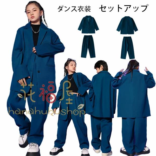 【送料無料】ダンス衣装 キッズ ロックダンス衣装 パンツスーツ 上下セット セットアップ ジャズ スーツ ジャケット 男の子 女の子 ボーイズ ガールズ ジャケット ロングパンツ イージーパンツ ウェストゴム