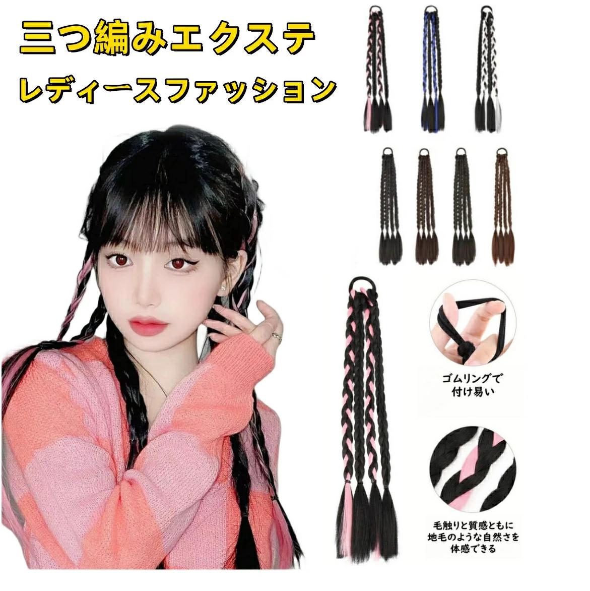 【2本セット】三つ編みエクステ ダーク エクステ 三つ編み ウィッグ 女の子 かんたん ダンス カッコいい おしゃれ キッズ エクステンション イメチェン ヘアアレンジ アレンジ イベント 発表会 ブラック ブラウン みつあみ