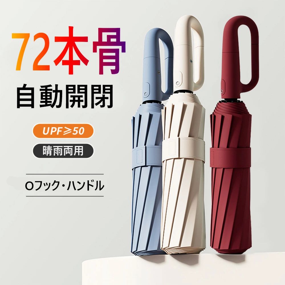 ■商品詳細 商品名:自動開閉折りたたみ傘 タイプ:通常タイプ・逆折りタイプ’ サイズ: Sサイズ:直径106cm Mサイズ:直径125cm 素材:高密度繊維布・高密度ガラスファイバー 重量:490g・700g 商品特徴: ●逆さに開いていろいろと便利 車の乗り降り時濡れずにラクに傘の開閉が可能。 ※雨で濡れた面が収納時に内側になるため、自分にも周りにも濡らしません。 ●断熱効果抜群、しっかりと紫外線を遮断! ●自動開閉・両手開放 わずか0.5sワンボタン式で車、電車、バスなど乗り降りの際や、荷物で片手で塞がている時に非常に便利 ●カラビナハンドル付き 持ち手はカラビナが付いており、ドアや玄関フック、リュック、買い物袋、ベビーカーに簡単に掛けられます。 ※ご覧になるモニター環境によって、色が実物と若干異なる場合がございます。ご了承下さい。 ※生産時期や製品改良などによって、一部デザインが予告なく変更することがございます。ご了承ください。■商品詳細 商品名:自動開閉折りたたみ傘 タイプ:通常タイプ・逆折りタイプ’ サイズ: Sサイズ:直径106cm Mサイズ:直径125cm 素材:高密度繊維布・高密度ガラスファイバー 重量:490g・700g 商品特徴: ●逆さに開いていろいろと便利 車の乗り降り時濡れずにラクに傘の開閉が可能。 ※雨で濡れた面が収納時に内側になるため、自分にも周りにも濡らしません。 ●断熱効果抜群、しっかりと紫外線を遮断! ●自動開閉・両手開放 わずか0.5sワンボタン式で車、電車、バスなど乗り降りの際や、荷物で片手で塞がている時に非常に便利 ●カラビナハンドル付き 持ち手はカラビナが付いており、ドアや玄関フック、リュック、買い物袋、ベビーカーに簡単に掛けられます。 ※ご覧になるモニター環境によって、色が実物と若干異なる場合がございます。ご了承下さい。 ※生産時期や製品改良などによって、一部デザインが予告なく変更することがございます。ご了承ください。