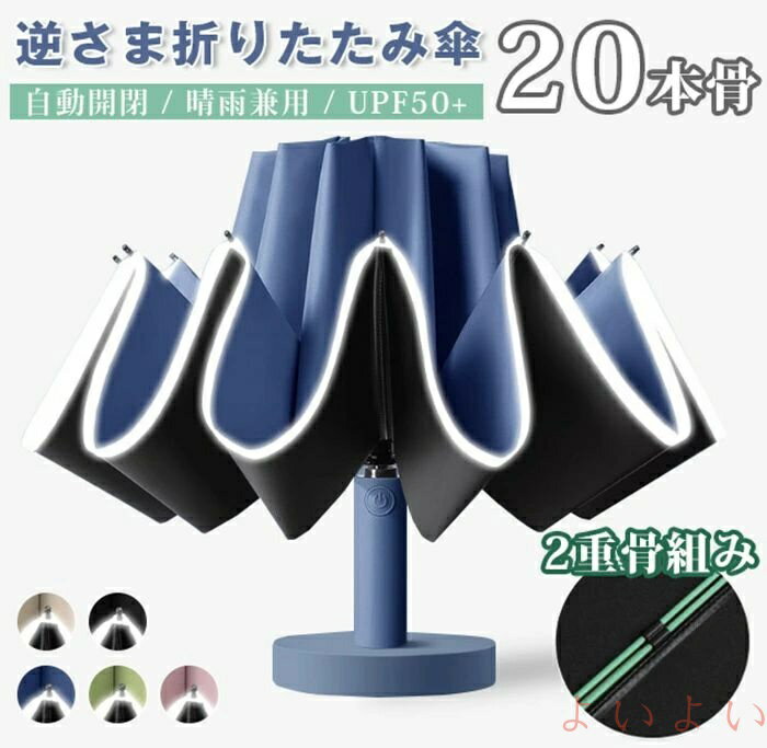 【送料無料】自動開閉 逆折りたたみ傘 日傘 UPF50+ 20本骨 二重骨組み 強風対応 ブラックコーティング 紫外線対策 UVカット 晴雨兼用 軽量 遮蔽 遮光 傘 レディース メンズ