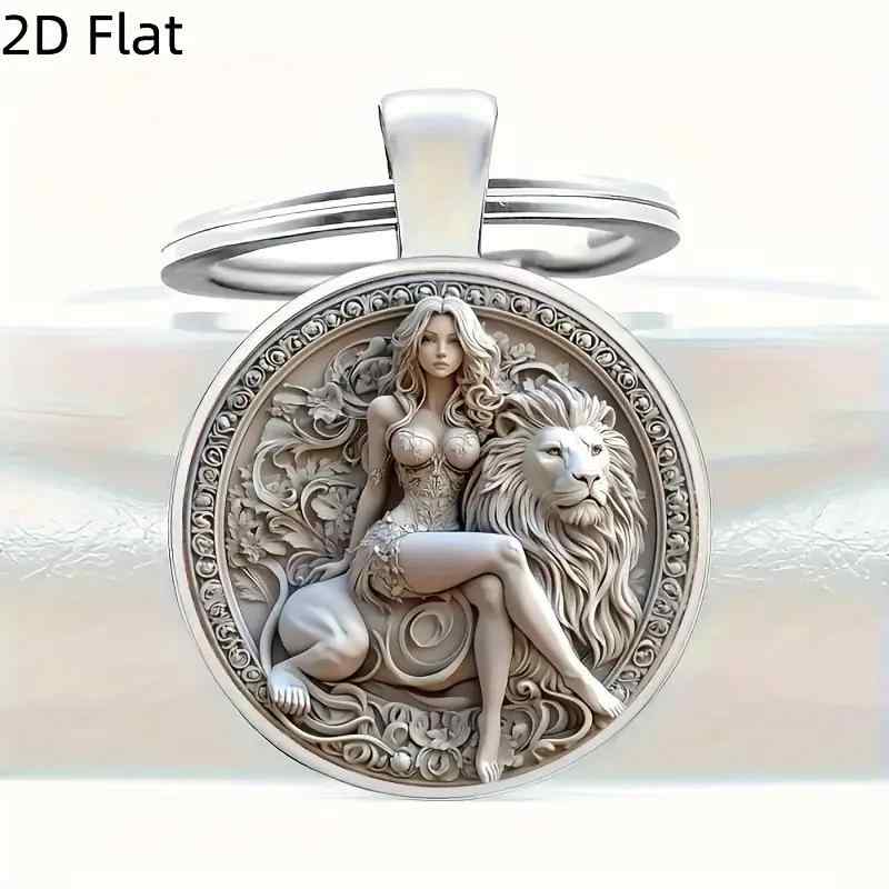 キーホルダー 美女とライオン 2Dフラットデザイン 亜鉛合金製 アンティークシルバー モダン シンプル 個性的 ファッション小物 誕生日 プレゼント ギフト