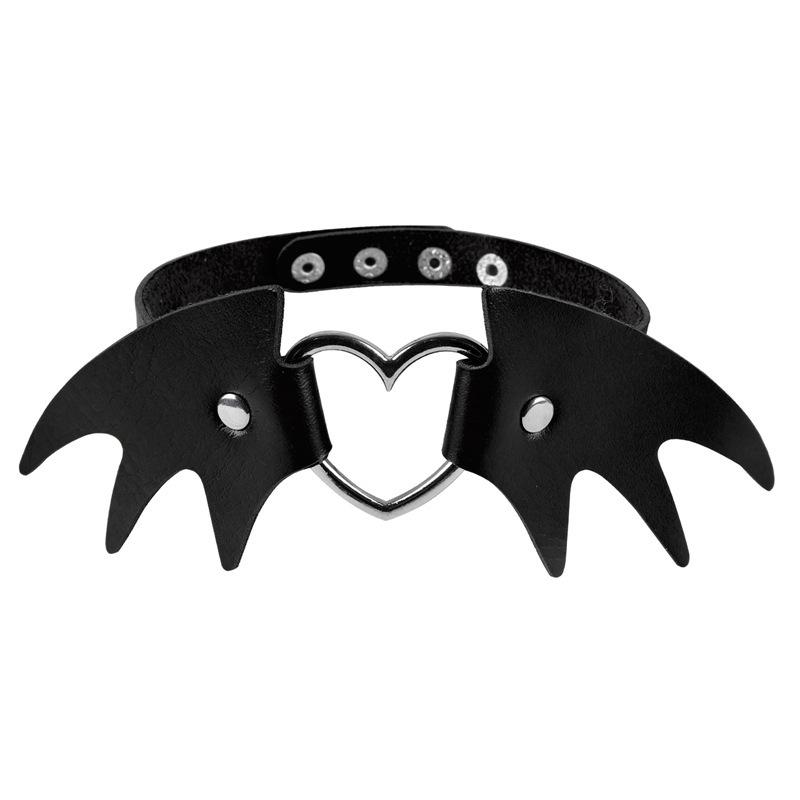 チョーカー ユニセックス 男女兼用 小悪魔 羽根 パンク 原宿系 ストリート ファッション Oリング フェイクレザー ネックレス アクセサリー 欧米スタイル 幾何学デザイン 面取り加工