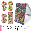 折りたたみミラー コンパクト 鏡 化粧直し用 手鏡 拡大ミラー かわいい おしゃれ トロピカル ハワイアン ハイビスカス 小さい 軽い 軽量 コスメ メイク用 化粧 雑貨 折り畳み式 かがみ メイク ミラー 携帯ミラー ハンドミラー コンパクトミラー 猫型 丸型 ハート型 kgm009