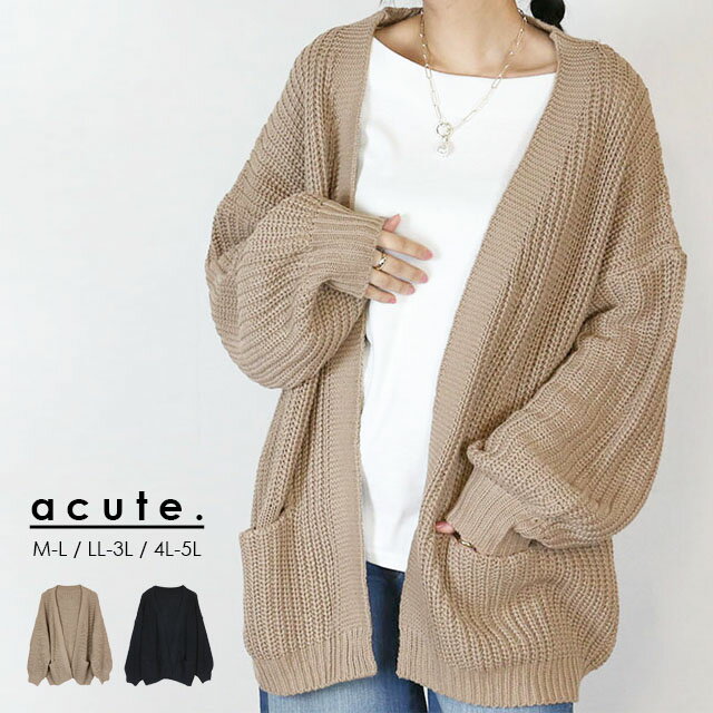 大きいサイズあり ボリューム袖ニットカーディガン n-0136 M L LL 3L 4L 5L ニットカーディガン オーバーサイズニット ニットカーデ ゆるニット ドルマンスリーブ ボリューム袖 ゆったり レディース 大人カジュアル 大人可愛い ざっくりニット ぽわん袖 オフィス 羽織り
