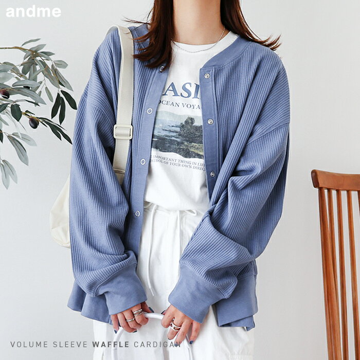 ワッフル 前後2way 長袖 カーディガン トップス レディース ドロップショルダー オーバーサイズ スナップボタン 楽ちん リラックス 重ね着 カジュアル 抜け感 M/Lサイズ 春 夏 秋 冬