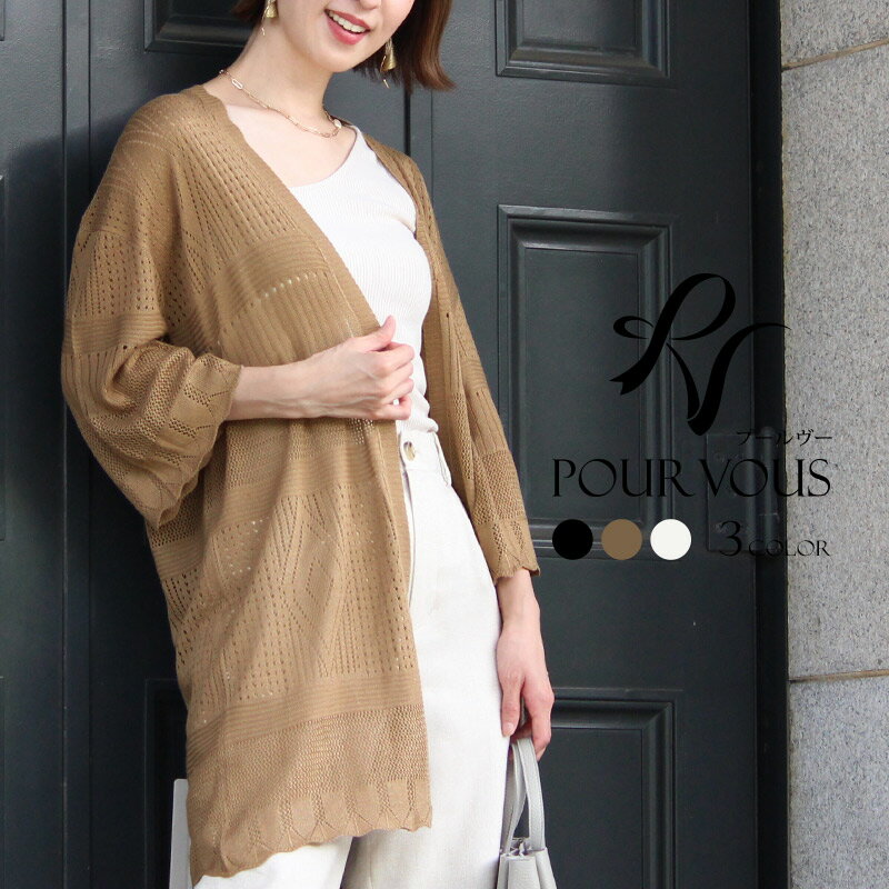 uvカット カーディガン ニットカーディガン ニット カーディガン ショート丈 クロップド丈 透かし編み ロングシーズン 透け感 シアー素材 シャリ感 リネンタッチ 涼しい 清涼感 ボリューム ゆったり シンプル 着回し スリット 抜け感 カジュアル ロング丈 ショート丈