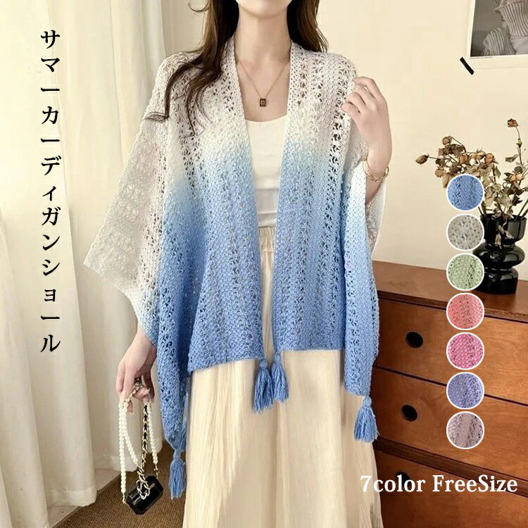 ショール サマーカーディガン 夏 レディース uvカット 透かし編み ニット カーディガン サマーニット ノースリーブ 透かし彫り 紫外線対策 薄手 アウター 羽織 トップス ゆったり 大人 カジュアル きれいめ 上品 可愛い フェミニン グラデーション