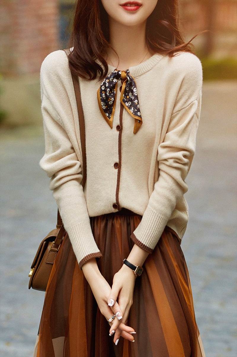 ニットカーディガン ショート レディース ニットセーター 前あき レトロ コーディガン スカーフ付き おしゃれ ニット トップス 長袖