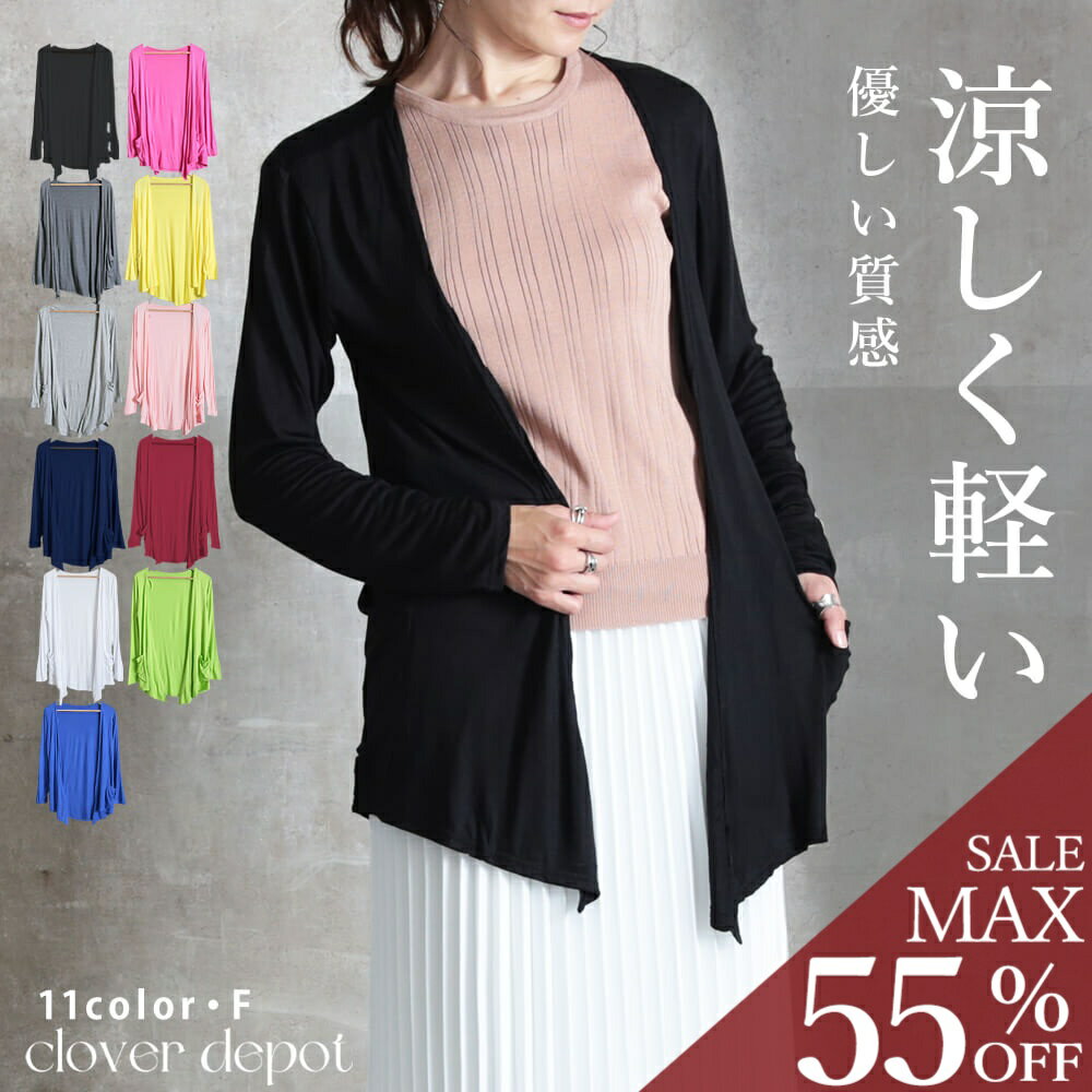 <半額クーポンで1690円!>即納 カーディガン 薄手 黒 薄め レディース 秋 冬 春 オフィス ロング 無地 長袖 ゆったり ヘムライン トップス きれいめ カットソー uvカット カーデ ロング 洗える 伸縮性 チュニック シンプル 羽織り 羽織