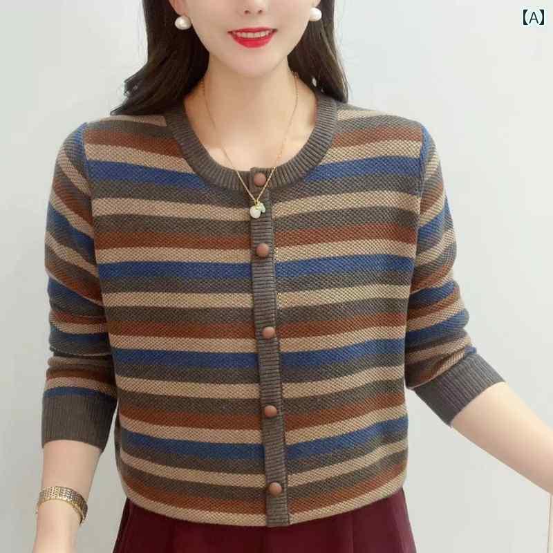 レディース トップス オシャレ ハイエンド カラフルな ストライプの カーディガン セーター 秋冬 肉を カバー し 年齢を 感じさせにくい ニット 女性用 おしゃれ カジュアル トップス