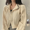 ニットカーディガン レディース 長袖 トップス ショート丈 ファスナー リブ編み ファッション きれいめ シンプル オフィス 通勤 20代 30代 40代 OL 大人 かわいい 大きいサイズ 秋物 冬物 送料無料