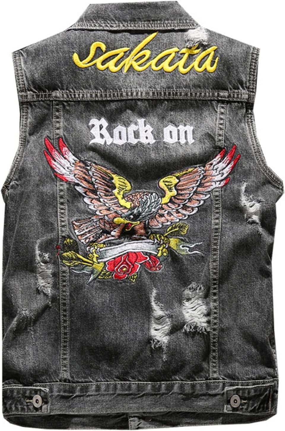 デニムベスト ダメージ 刺繍 アメリカ風 ライダース メンズ レトロ ジージャン Gジャン ノースリーブ ベスト ジレ チョッキ カジュアル 無袖ジャケット 個性的 印象 かっこいい 大きいサイズ グ
