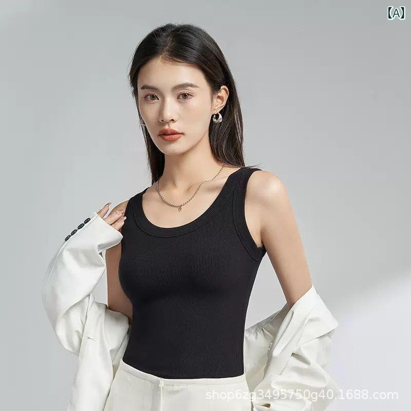 2025 新型 氷 糸 ねじ ダイエット 小 ベスト 女性の トレンドは、 袖 なしの 洋風 シャツを 着て いる