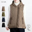 BIG ZIP使いキルティングベスト 4色 M-LL 中綿 洗える レディースファッション アウター ベスト フード付き 袖なし ポケット付き ファスナー 中綿キルト 保温性 防寒対策 体温調節 体型カバー 体型隠し 4453 【送料無料】