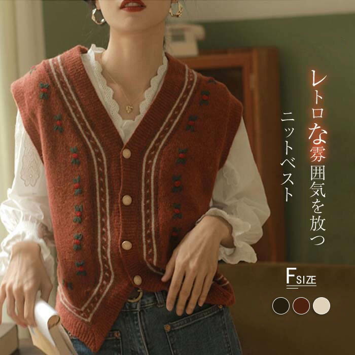 花柄 刺繍 ニット ベスト レディース コーデ 春 サマー ベスト 春秋 前開き ニットベスト 春ベスト おしゃれ 着回し 薄手 トップス 体型カバー ノースリーブ シンプル カジュアル ナチュラル レイヤード 重ね着 定番 可愛い 20代 30代 森ガール カワイイ