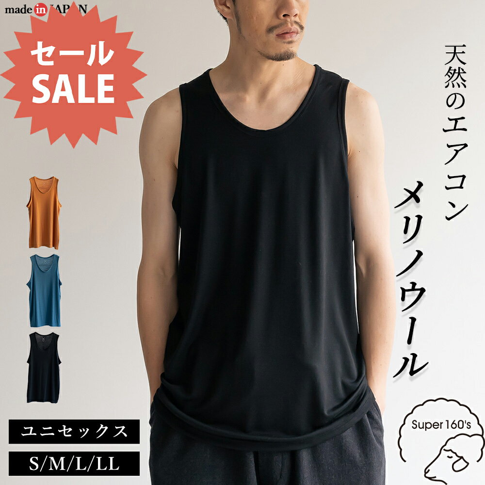 メンズ スーパー160 メリノウール 日本製 尾州織り タンクトップ BIG tシャツ インナー 登山 キャミソール アンダーウェア カットソー ベースレイヤー 夏 春 秋 冬 ファッション ウルトラライト キャンプ トレッキング アウトドア
