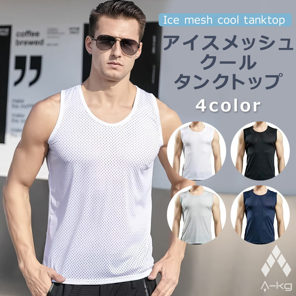 A-KG メンズ タンクトップ メンズ TP06-09 冷感 クール 吸汗 速乾 メッシュ 男性 下着 ノースリーブ 袖なし インナー シャツ ひんやり 薄い 肌着 下着 無地 薄手