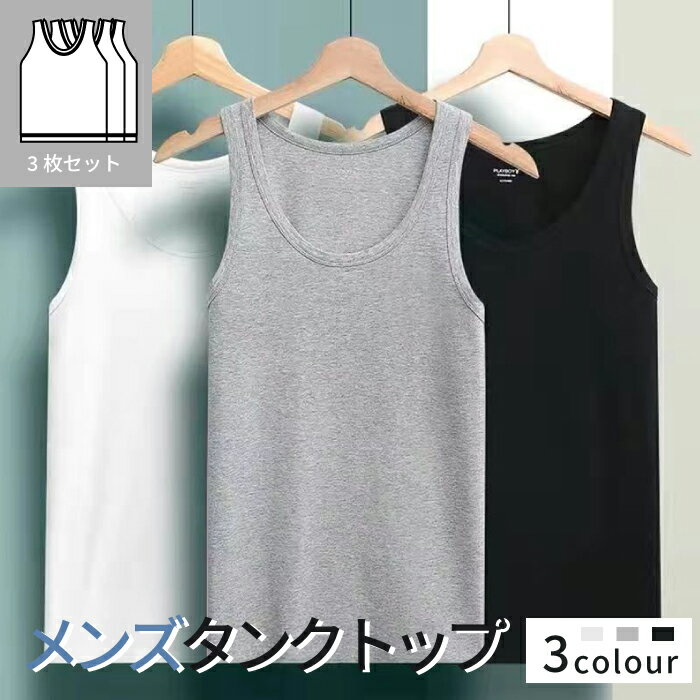 タンクトップ メンズ 3枚セット コットン 綿 夏 サマー タイト スポーツ フィットネス ボトミング スリム 通気性 ブラック グレー ホワイト 白 黒 アンダーシャツ
