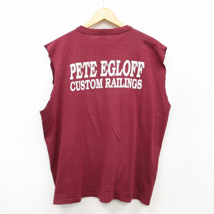 【中古】古着 ラッセル ノースリーブ ビンテージ ヴィンテージTシャツ メンズ 80年代 80s PETE EGLOFF 大きいサイズ 2L LL ビッグシルエット ゆったり ビッグサイズ オーバーサイズ クルーネック 丸首 USA製 アメリカ製 エンジ XLサイズ 中古 春夏 夏物 夏服 メン