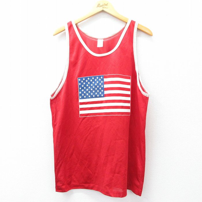 【中古】古着 ビンテージ ヴィンテージ タンクトップ メンズ 80年代 80s 星条旗 メッシュ地 クルーネック 丸首 赤他 レッド XLサイズ 中古 春夏 夏物 夏服 メンズファッション カジュアル おしゃれ