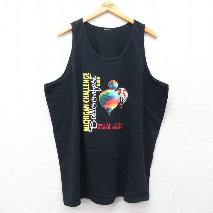 【中古】古着 ビンテージ ヴィンテージ タンクトップ メンズ 00年代 00s ミシガン 気球 大きいサイズ 2L LL ビッグシルエット ゆったり ビッグサイズ オーバーサイズ クルーネック 丸首 黒 ブラック XLサイズ 中古 春夏 夏物 夏服 メンズファッション カジュアル