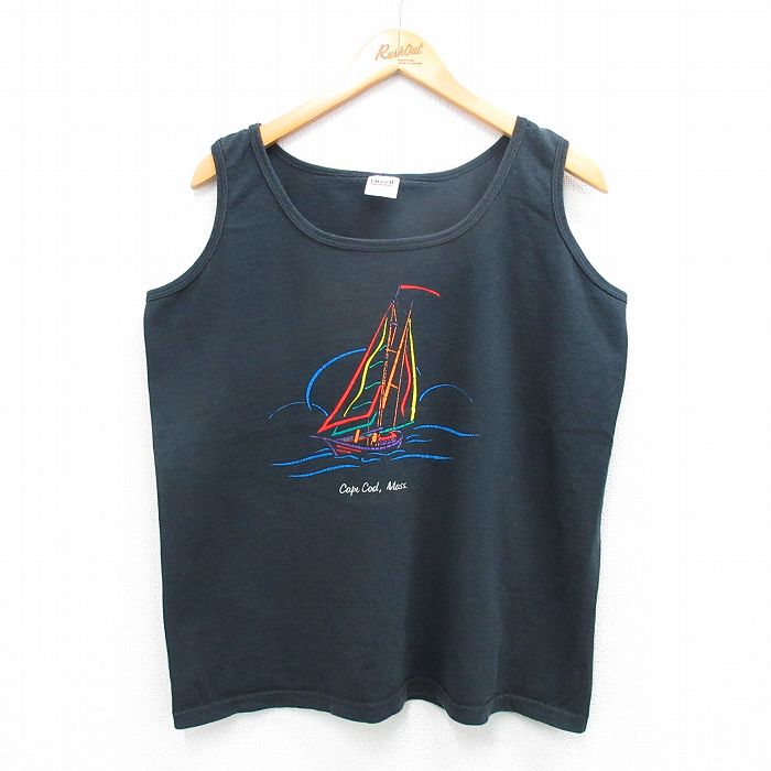 【中古】古着 ビンテージ ヴィンテージ タンクトップ メンズ 90年代 90s ヨット ケープコッド コットン クルーネック 丸首 USA製 アメリカ製 黒 ブラック Lサイズ 中古 春夏 夏物 夏服 メンズファッション カジュアル おしゃれ