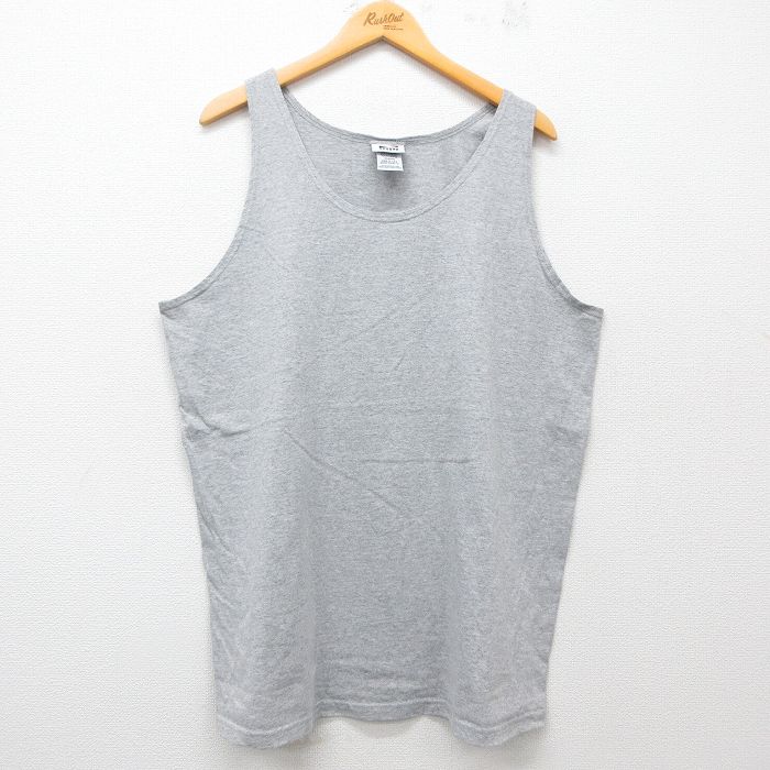 【中古】古着 ビンテージ ヴィンテージ タンクトップ メンズ 90年代 90s 無地 大きいサイズ 2L LL ビッグシルエット ゆったり ビッグサイズ オーバーサイズ ロング丈 クルーネック 丸首 USA製 アメリカ製 グレー 霜降り XLサイズ 中古 春夏 夏物 夏服 メンズファ
