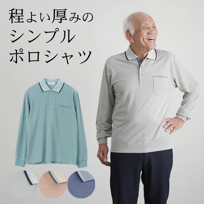 シニアファッション メンズ 80代 70代 60代 90代 春夏 無地 バーズアイ鹿の子 長袖 ポロシャツ おじいちゃん 服 誕生日 プレゼント 紳士服 男性 祖父 お年寄り 老人 高齢者 ギフト 敬老の日 プレゼント 孫 施設