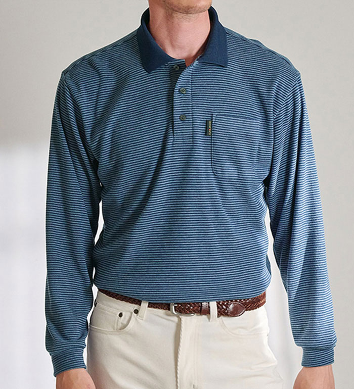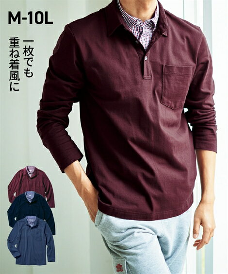 ポロシャツ メンズ お腹ゆったり 綿100% 2枚衿 長袖 消臭テープ付 エンジ系/ネイビー系/ブルー系 M/L/LL ニッセン nissen