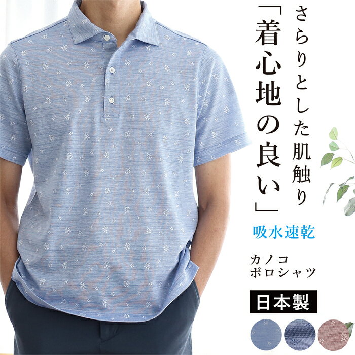 ポロシャツ メンズ 半袖 地柄 ジャガード ゴルフ おしゃれ 贈り物 Tシャツ 吸水 速乾 リモートワーク ビジネスカジュアル ボタン 鹿の子 編み 紳士 日本製 男性 30代 40代 50代 60代 ネイビー ブルー エンジ 紺 プレゼント ギフト
