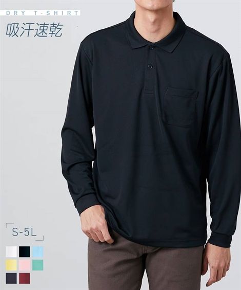 ポロシャツ カジュアル メンズ 吸汗速乾 UVカット ポケット付きメッシュ 長袖 トップス ネイビー〜ライトブルー S/M/L/LL ニッセン nissen